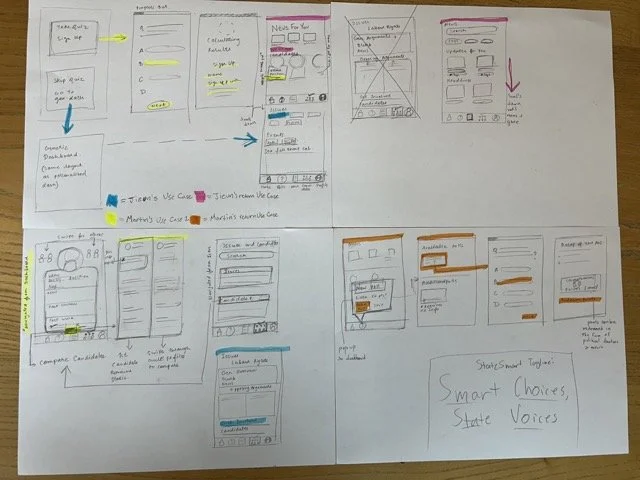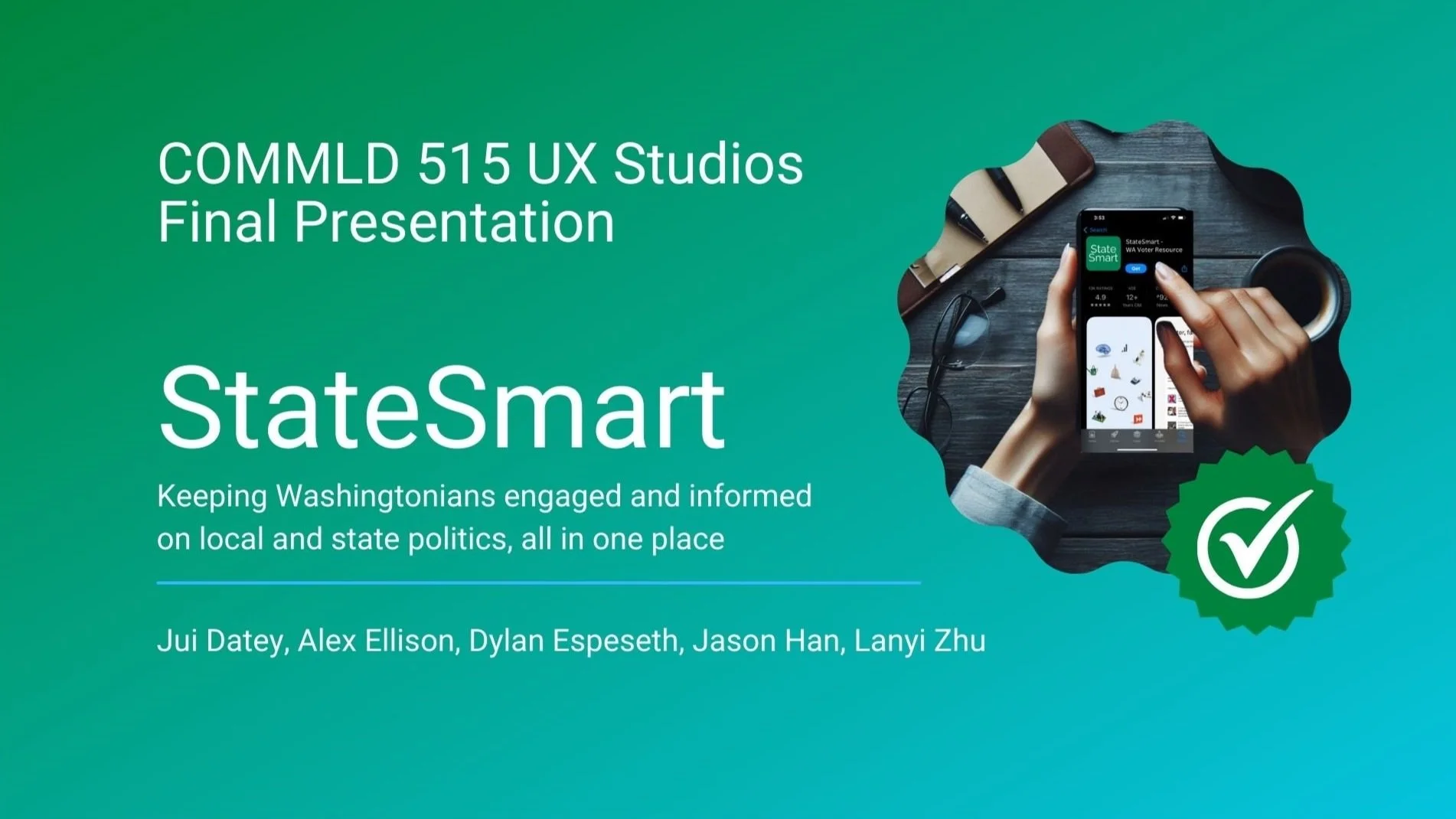 The Advanced UX Studio course is designed to simulate a real-world UX research and design process within an academic setting. My group was tasked with ideating a theoretical product (StateSmart) and then going through a real research & design process - culminating in a fully functioning prototype - with focused instructor feedback throughout.